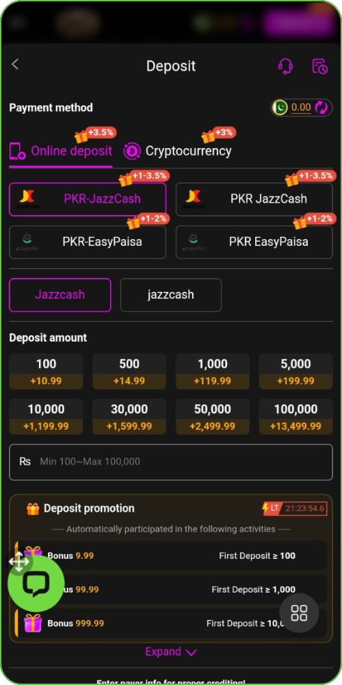 - Go to the “Deposit” section.