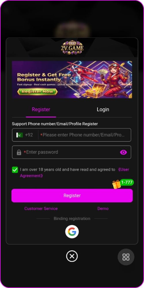 Account Registration on 2V Game Platform