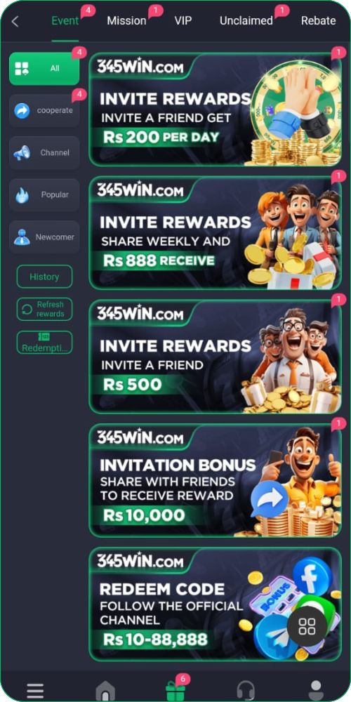These rewards help users earn extra money without additional investment on 345WIN App Download.