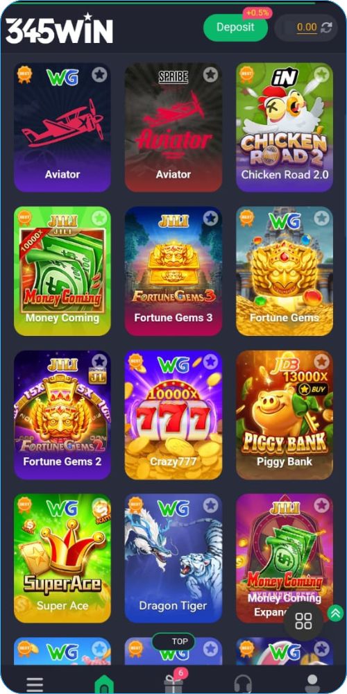 The 345WIN App platform offers a wide variety of games to keep users engaged. These include: