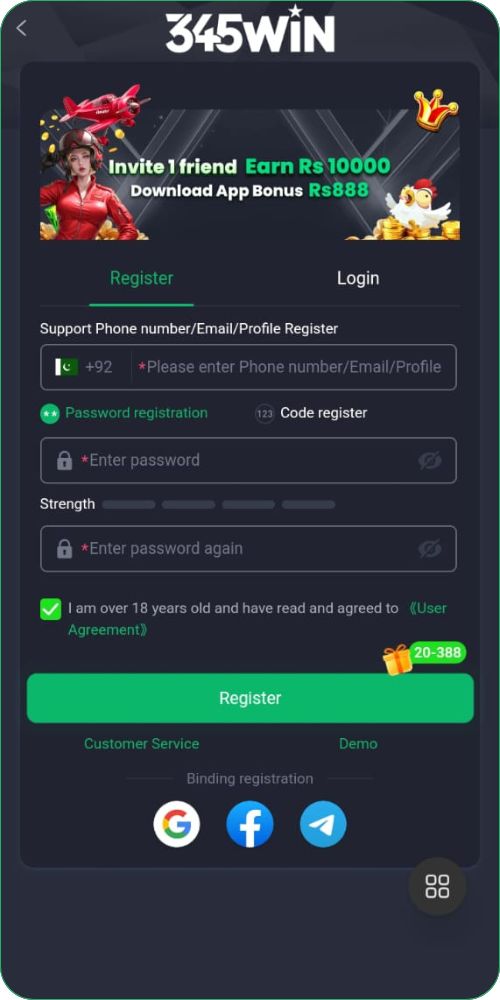 To start earning on 345WIN Casino, users need to add funds to their wallet. The app supports multiple deposit options commonly used in Pakistan: