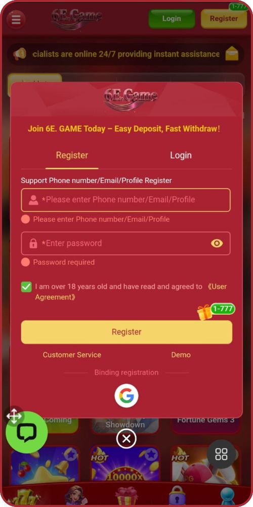 Registration and Login Process on 6E Game App