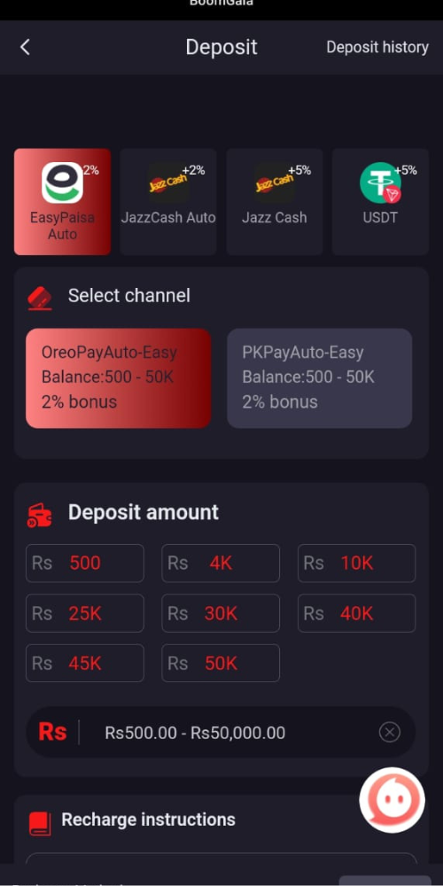 One of the strongest points of Boom Gala Casino is its support for local Pakistani payment systems. This makes deposits easy and convenient for users.