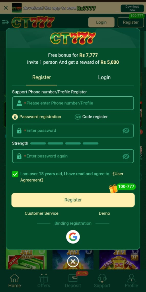 The CT777 Game Login system is fast and secure. Returning users can log in using their registered mobile number and password.