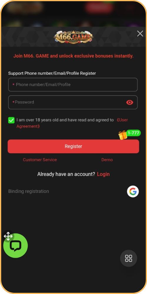 Creating an account on M 66 Game App is simple and fast.