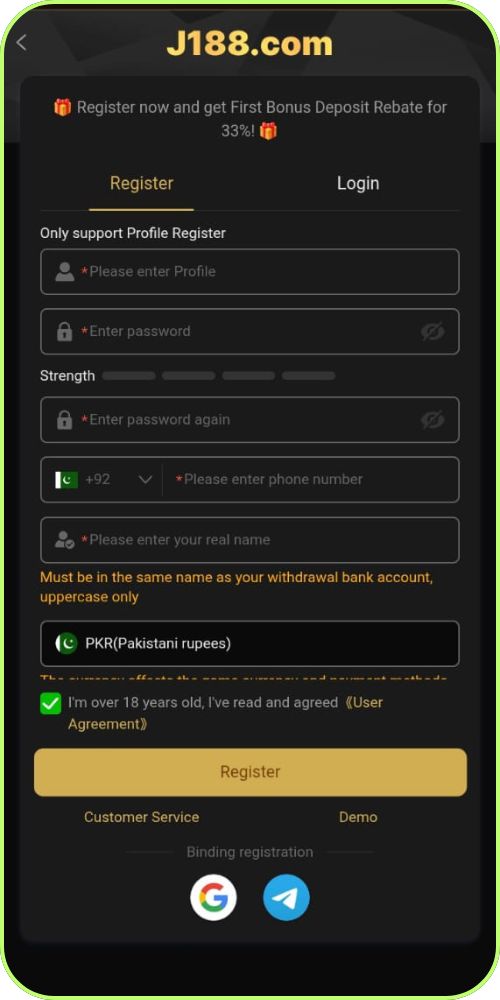 New users receive a bonus after completing registration in J188 App Download.