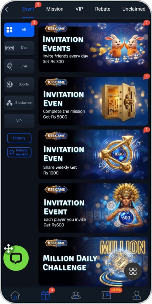 The K55 App offers a referral system that allows users to earn even without playing games.