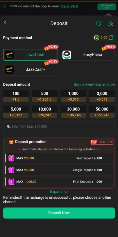 To earn bigger rewards, many users deposit a small amount. Here’s how the BV999 deposit system works: