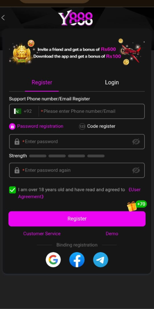 - Registration complete, you’re ready to use the Y888 Earning App